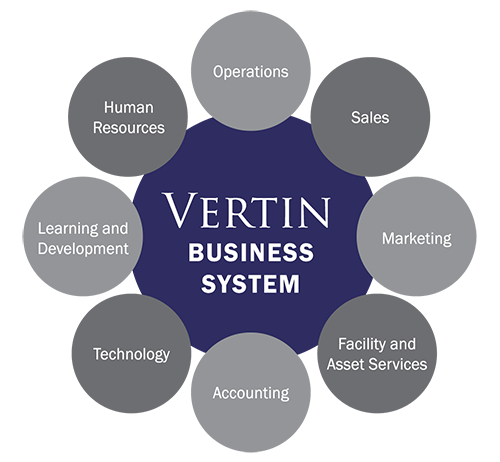 The Vertin Business System was built on the foundational principles of best-in-class business: top talent, and effective and efficient processes. Our approach fosters reliable positive results and is key to engaging employees, encouraging maximum productivity, and ensuring consistent quality service. It also provides the necessary structure for strategic planning, continuous improvement, and innovation.